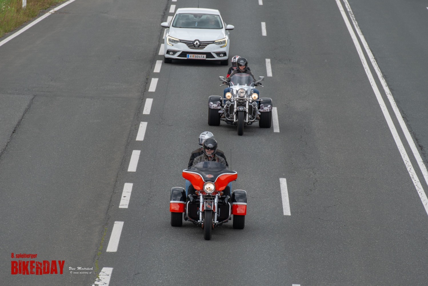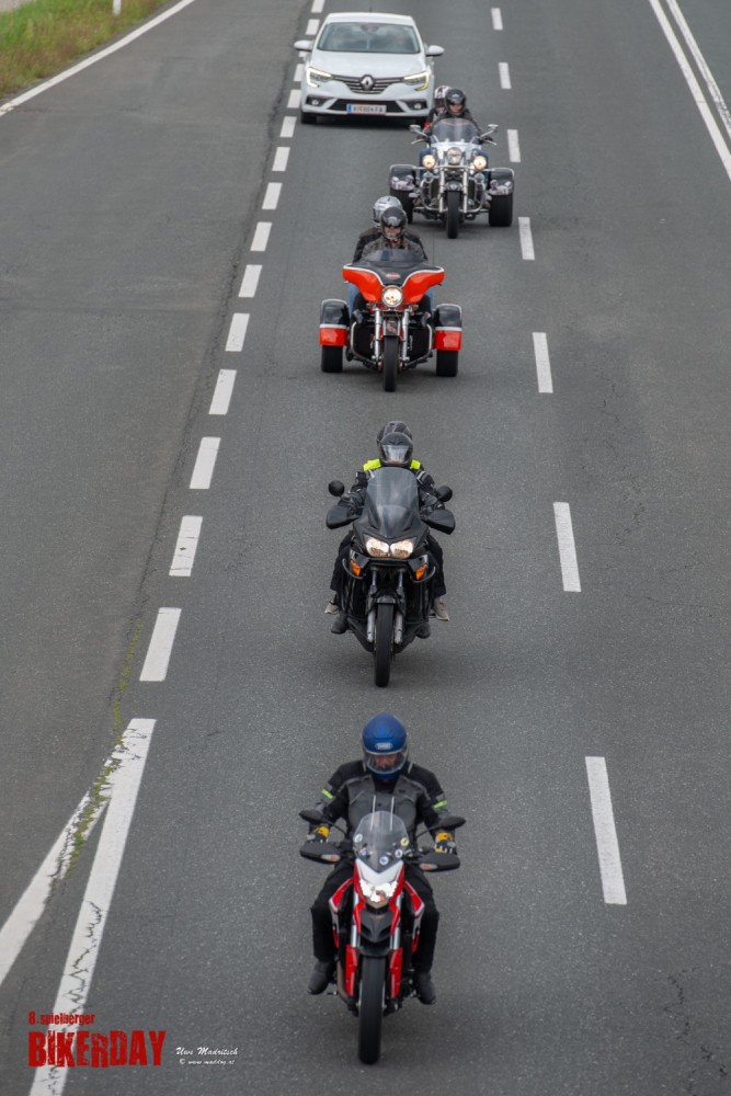 So kamen auch heuer wieder mehr als 30 Bikes zu unserem Bikerday. Von der Vespa bis hin zum Harley Davidson Trike waren alle Motorrad Typen und Marken vertreten. Nach einer kleinen Stärkung beim Frühstück im Coconut Spielberg zubereitet vom Chef Thomas Zuber persönlich, ging pünktlich um 09.00 Uhr die Reise los.